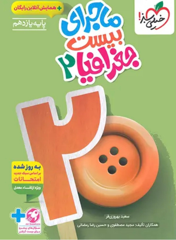 کتاب ماجرای بیست جغرافیا یازدهم خیلی سبز یا همان ماجرای من و درسام جغرافیا یازدهم یک مجموعه کامل برای آموزش جغرافیا 2 به زبان ساده و ایجاد آمادگی برای شرکت در امتحانات پایان ترم است. این کتاب را خانم شادی کاریان تالیف کرده و در آن خط به خط مطالب کتاب درسی را با به کارگیری بخشهای متنوع و جذاب پوشش داده است.