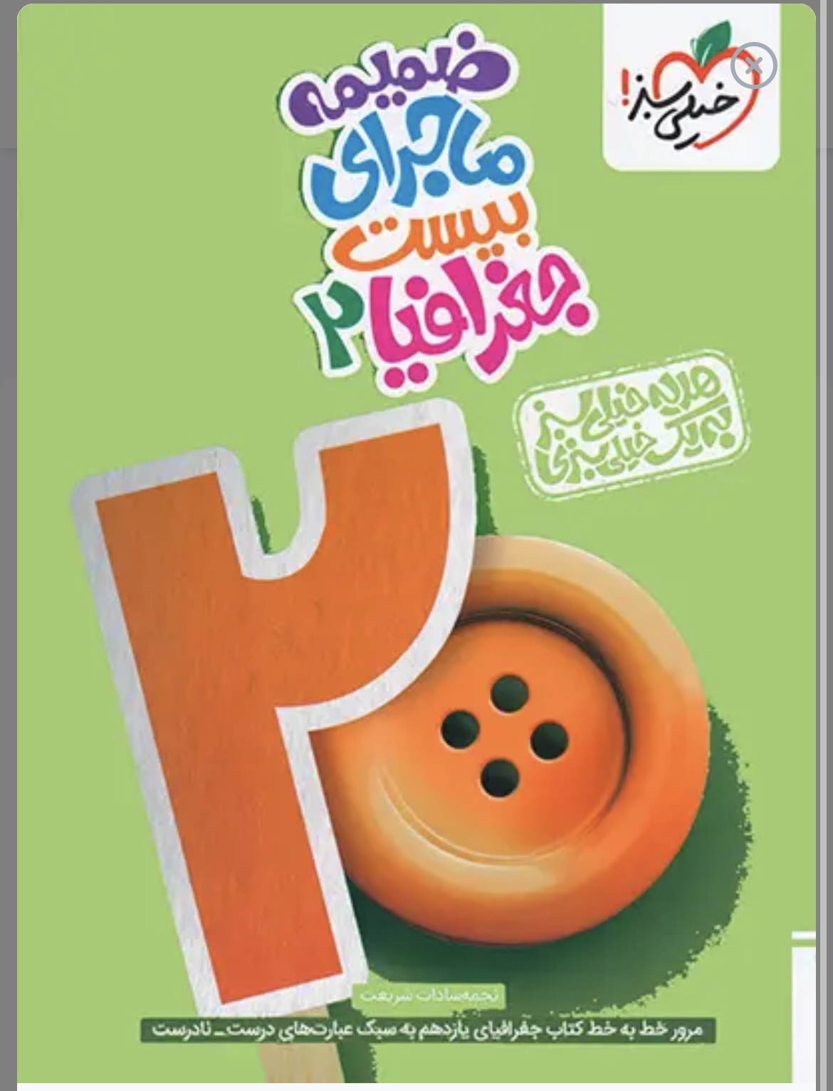 کتاب ماجرای بیست جغرافیا یازدهم خیلی سبز یا همان ماجرای من و درسام جغرافیا یازدهم یک مجموعه کامل برای آموزش جغرافیا 2 به زبان ساده و ایجاد آمادگی برای شرکت در امتحانات پایان ترم است. این کتاب را خانم شادی کاریان تالیف کرده و در آن خط به خط مطالب کتاب درسی را با به کارگیری بخشهای متنوع و جذاب پوشش داده است.