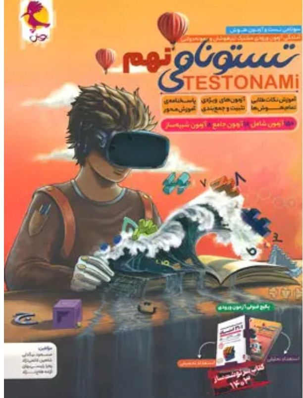 کتاب تستونامی نهم شامل سوالات هوش تجسمی و تصویری، هوش کلامی، هوش منطقی، آزمون های شبیه ساز میباشد. این کتاب شامل 150 آزمون در قالب 5 فصل می باشد که 4 فصل آن با عناوین هوش تجسمی و تصویری، هوش کلامی، هوش منطقی به صورت طبقه بندی شده و فصل آخر آزمون های شبیه ساز با پاسخ کاملا تشریحی آورده شده است.