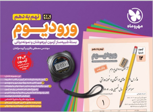 کتاب بسته شبیه ساز آزمون های ورودی مدارس نمونه دولتی و تیزهوشان نهم سری ورودیوم انتشارات مهر و ماه